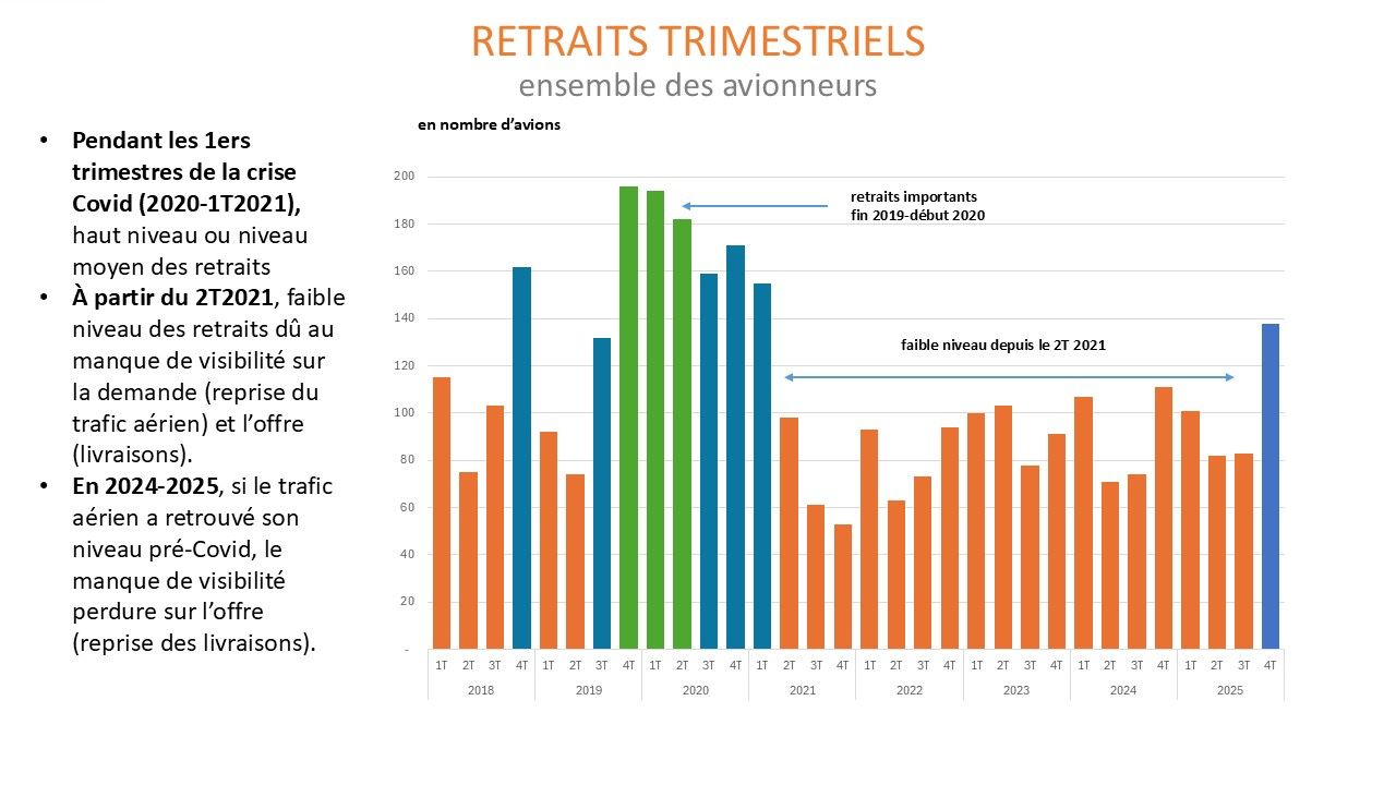 Le manque de visibilité sur les livraisons d’avions neufs a conduit les opérateurs à une attitude de prudence en limitant les retraits d’appareils anciens.