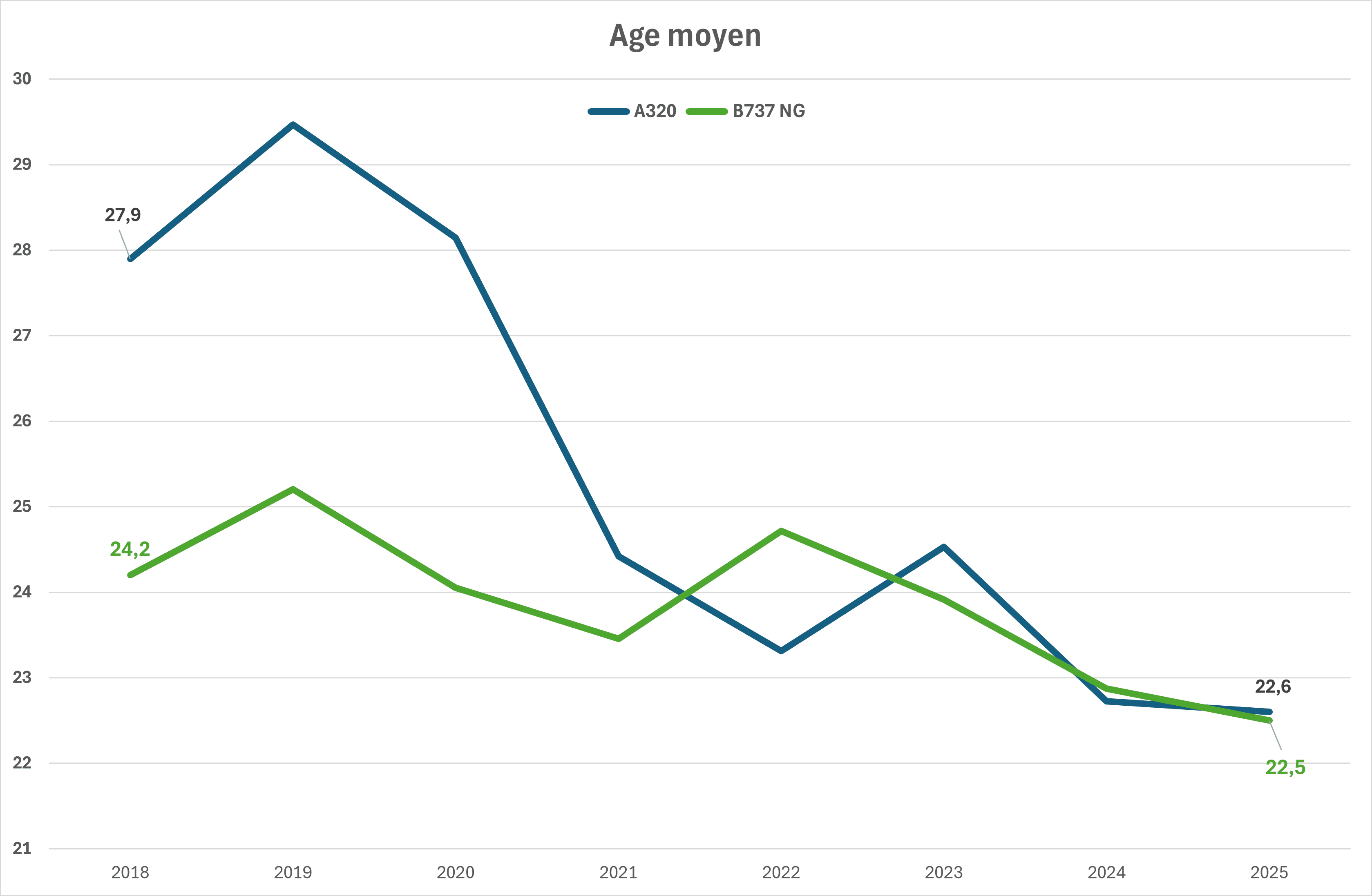 L’âge des retraits des A320 et des B737 NG est très proche.