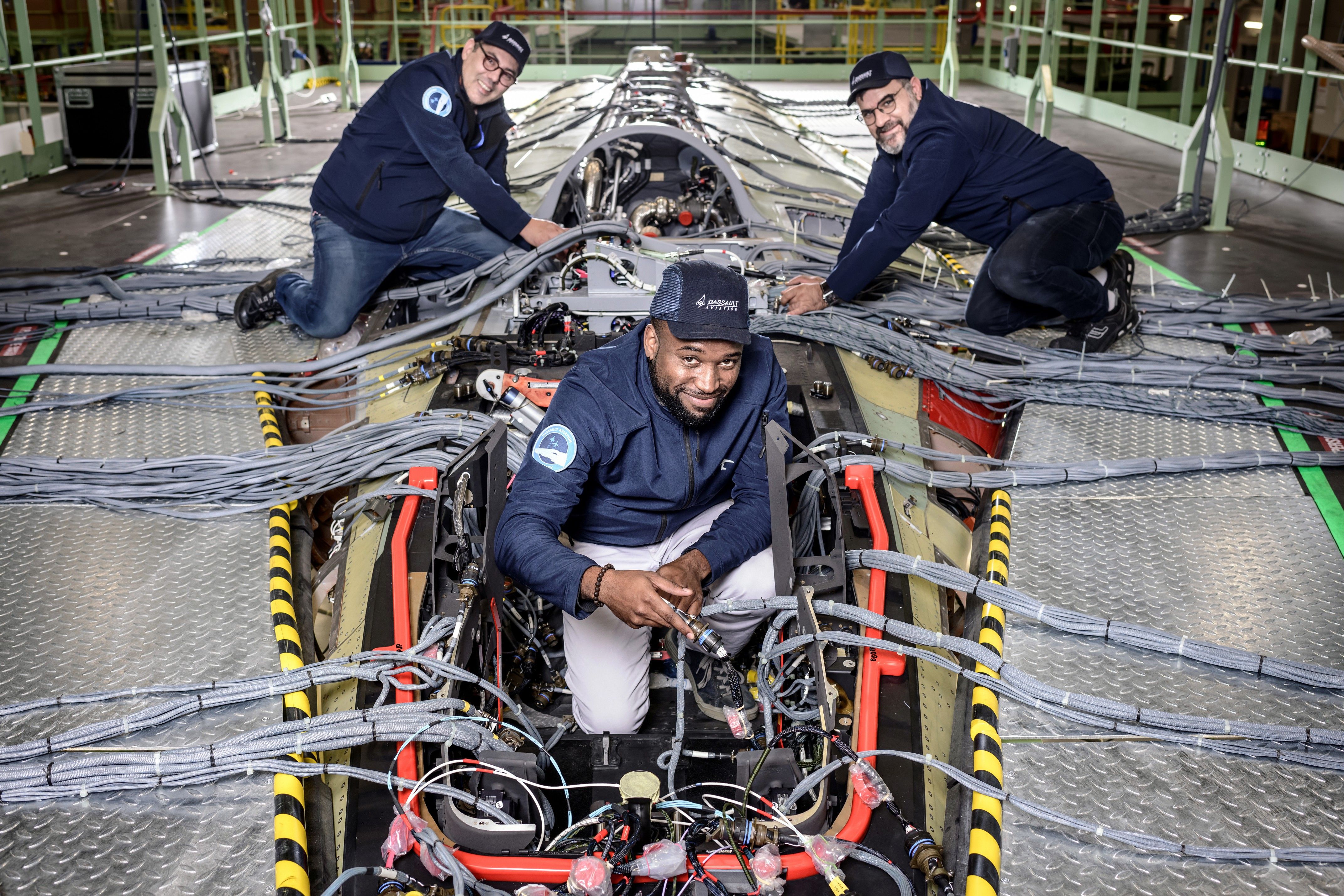 La première, les compagnons sont aux prises avec une cellule de Falcon/civil. La seconde, ce sont les techniciens qui testent les circuits hydrauliques du Rafale/militaire. Cette dualité civil-militaire, grâce à leur cycle décalé, a permis à Dassault de traverser de nombreuses crises.