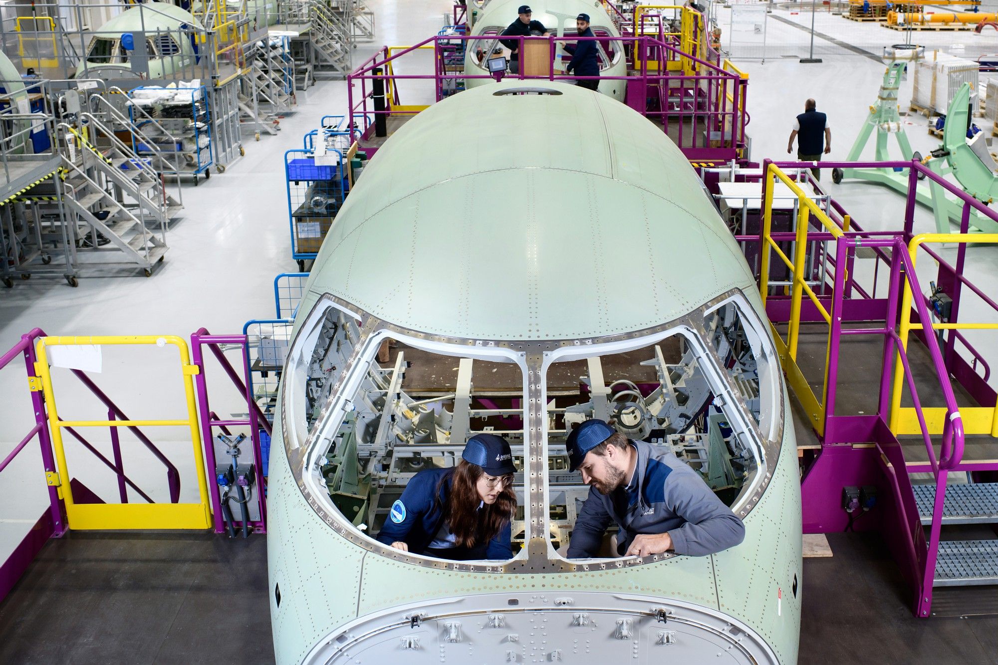 Pour être précis, cette gestation à Cergy se déroule en périodes entrecoupées d’aller-retour avec l'usine d’Anglet responsable des tronçons arrière de l'avion.