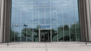 La façade fait plutôt penser à celle d’une banque qu’à celle d’une usine où l’on monte les célèbres RAFALE.