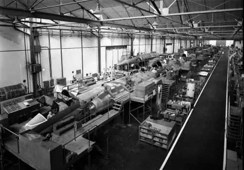 La photo ci-après montre la chaîne de montage du célèbre Mirage IV, en date de 1963.